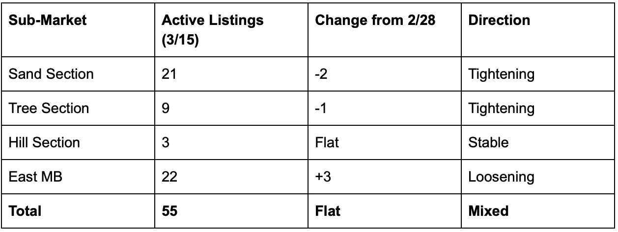 Source: MB Confidential, Manhattan Beach Real Estate Inventory as of 3/15/26 [1]