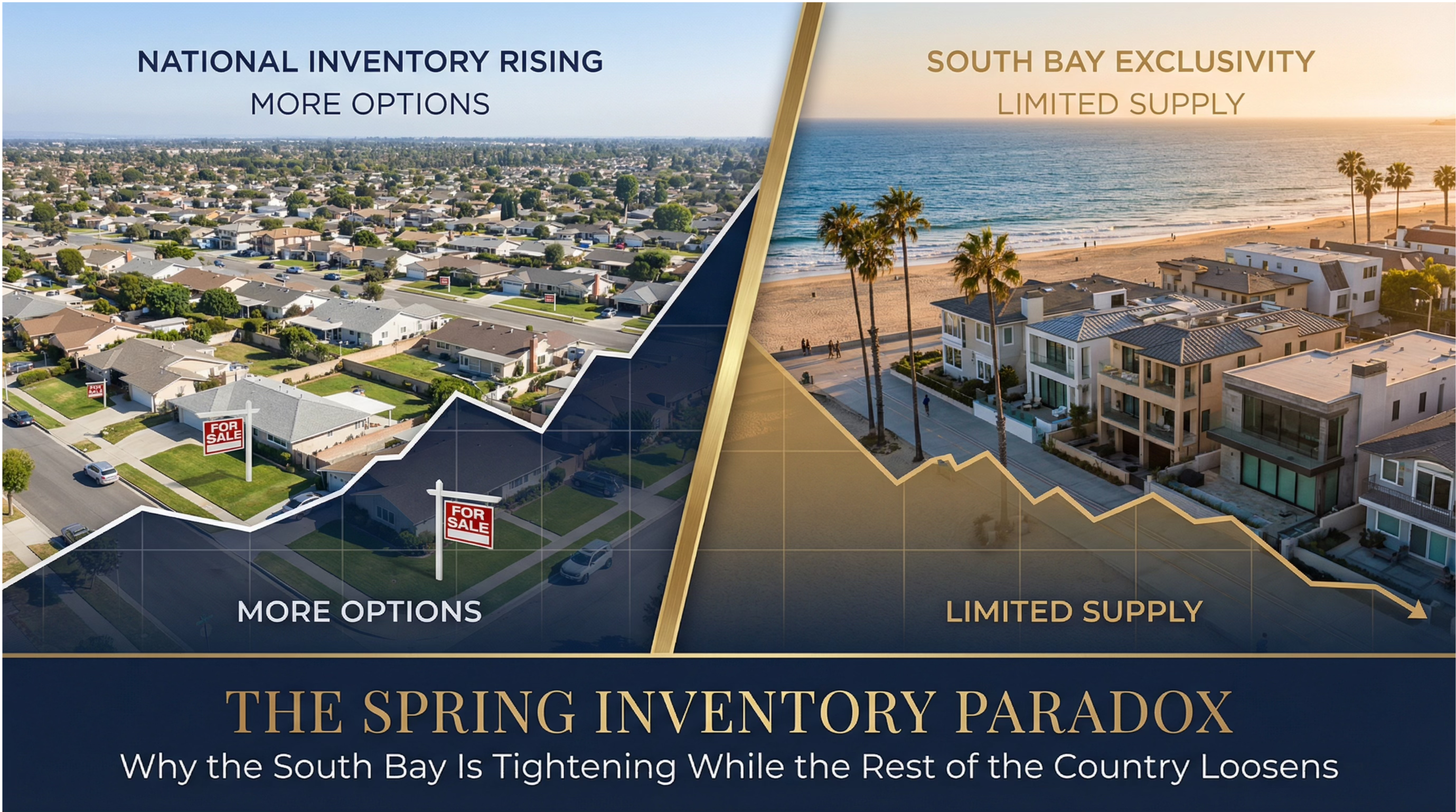 Manhattan Beach just posted its busiest February in years. Hermosa Beach inventory is shrinking, not growing. And the data reveals a structural paradox that most national coverage completely misses: the higher the price point, the tighter the supply — and the South Bay sits squarely in the zone where the national inventory recovery has barely arrived.